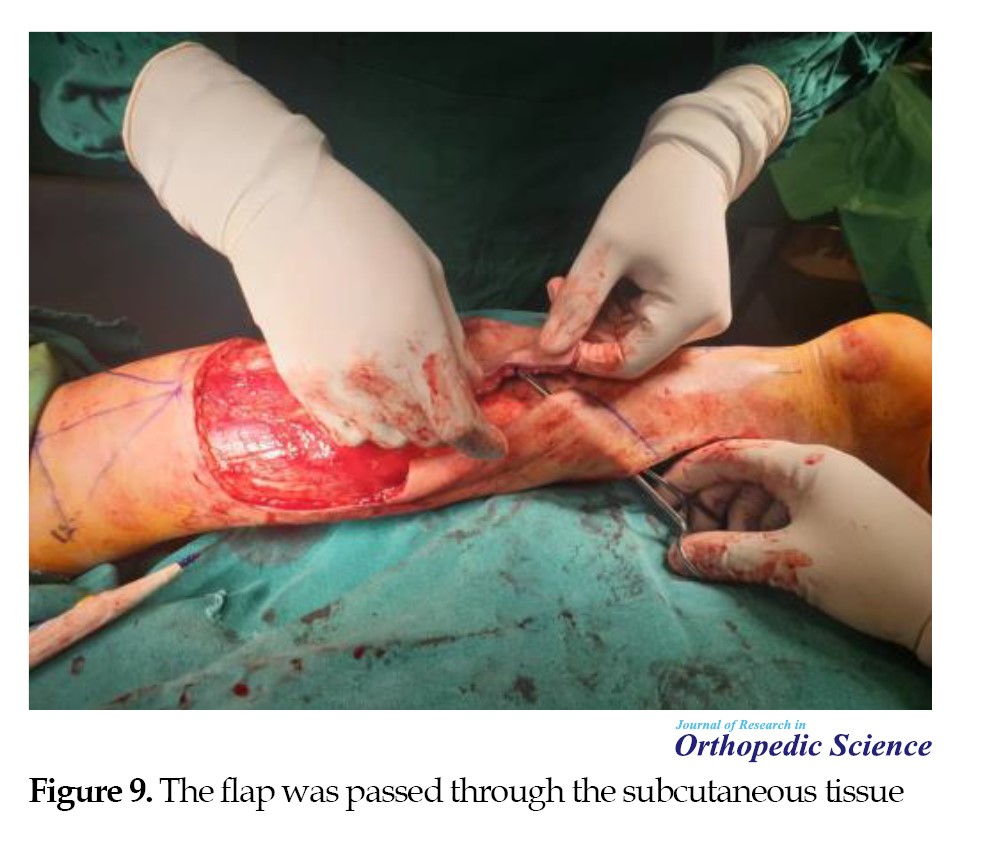 - Chang SM, Wang X, Huang YG, Zhu XZ, Tao YL, Zhang YQ. Distally based perforator propeller sural flap for foot and ankle reconstruction: A modified flap dissection technique. Ann Plast Surg. 2014; 72(3):340-5. [DOI:10.1097/SAP.0b013e31826108f1] [PMID]