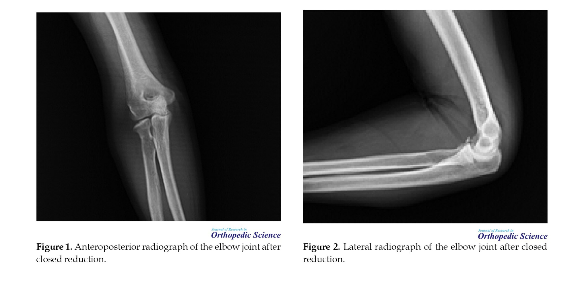 The exclusion criteria included patients with significant joint instability or subluxation after closed reduction, displaced or comminuted radial head or coronoid fractures requiring surgical fixation, intra-articular fragments that could not be reduced conservatively, neurovascular compromise or open injuries requiring surgical intervention, history of previous elbow trauma or pre-existing elbow arthritis, and patients who were non-compliant with follow-up or physiotherapy.
